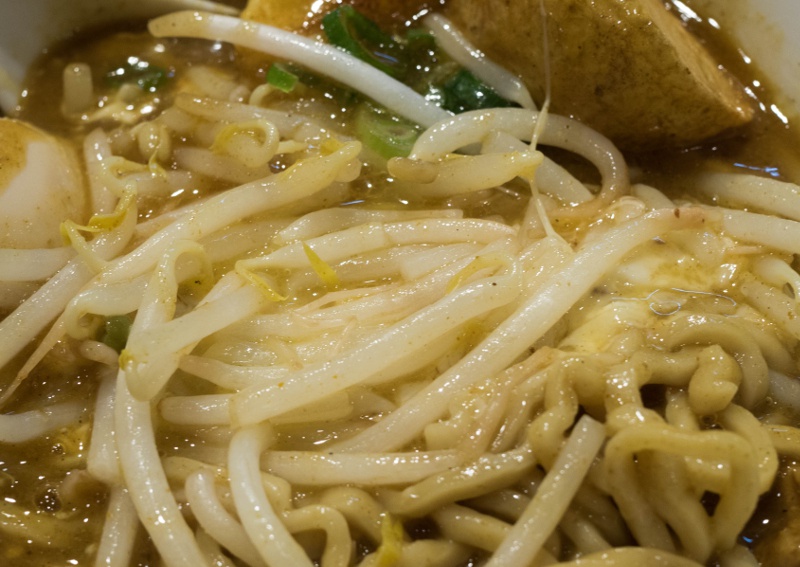粘性のあるカレースープは通常の醤油スープがベースとして香辛料がまろやかに効いてスパイシー。 |