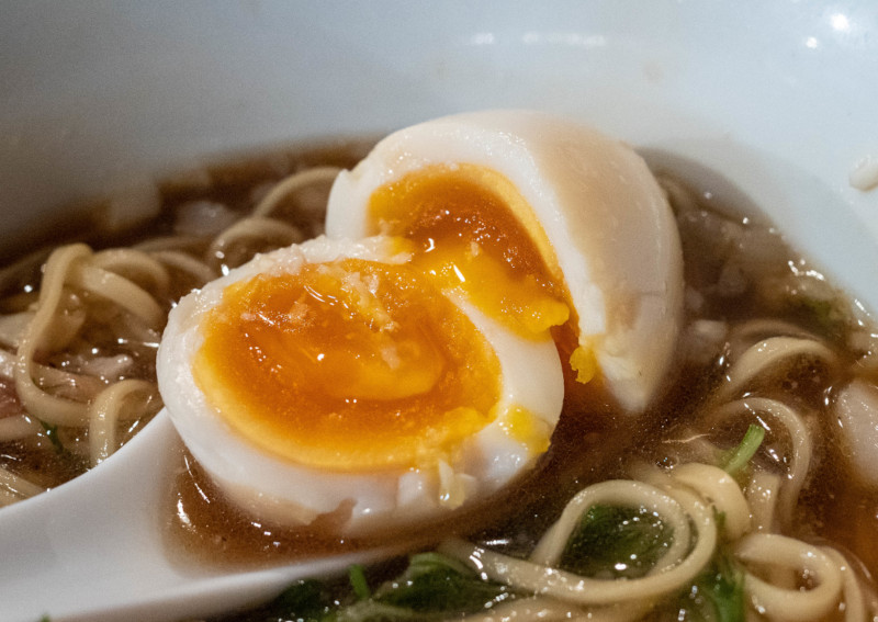 地鶏に国産蛤を合わせた濃い醤油色の清湯スープは、旨味がたっぷりで、クッキリと芳醇な醤油味。 |