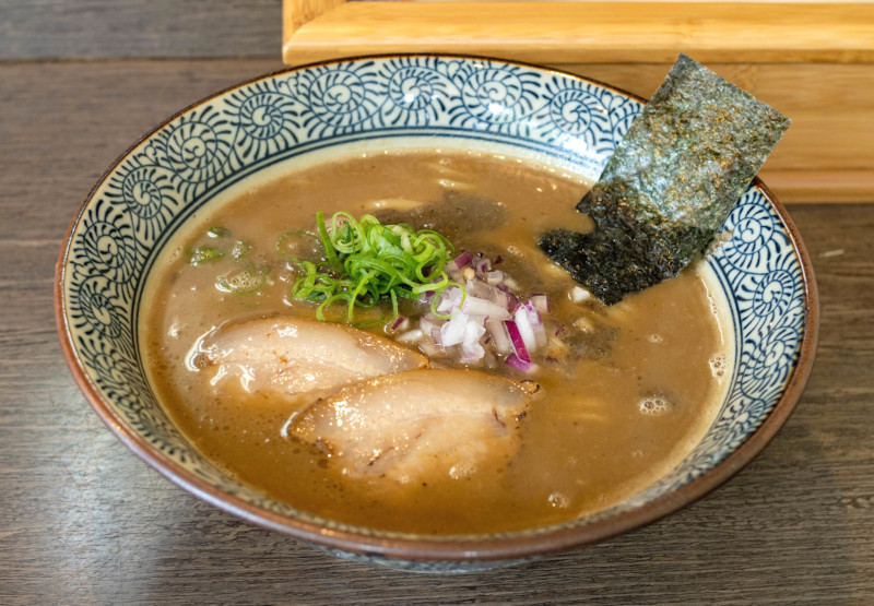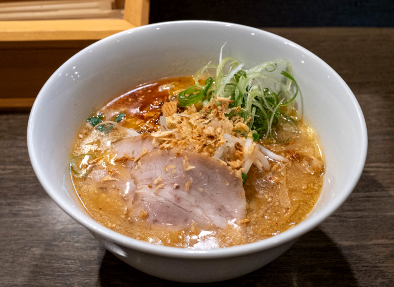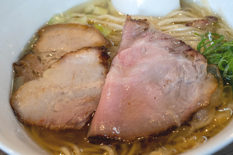 【(限定)軍鶏×和出汁(塩)】 [2022/6/26] ¥1300 6/26、戸舘店長修了記念の限定メニュー 公式Twitterより(抜粋) 本日は限定メニューのみでの営業となります。 猛暑日となりますのでお並びの際は熱中症にお気をつけください。 ・軍鶏×和出汁(200食) ・軍鶏×煮干し(30食) ・軍鶏×豚×海老つけ麺(8食) 売り切れ次第閉店となります。 限定詳細 ① 軍鶏×和出汁 信州黄金しゃもと真昆布、鰹を最大限綺麗に出汁を取りました。 仕上げに数滴の炭火吊るし焼きオイル。 黒豚ロース、黒豚煮バラ、富士桜ポーク炭火吊るし焼きトッピング ライ麦入り 加水40%の細麺を使用。 限定詳細 ② ・軍鶏×煮干し(30食) 頭と腑を取り除いた煮干しの旨味を低温で長時間抽出。 軍鶏出汁を少量合わせます。 黒豚ロース、富士桜ポーク炭火吊るし焼きトッピング 春よ恋 加水28%の極細麺を使用。 限定詳細 ③ ・軍鶏×豚×海老(8食) 信州黄金軍鶏の手羽先、岩中豚ゲンコツ、海老を強火で濃厚に炊き上げました。 ラードに海老の香りを移した油を使用。 黒豚煮バラ、富士桜ポーク炭火吊るし焼き トッピング 春よ恋、もち姫 加水45%極太麺を使用。 本日先着順で味玉サービスします! 無くなり次第わけあり味玉のサービスに変更となります。 お一人様につきサービス一つまでとさせていただきますので、連食ご希望のお客様は味玉希望のらーめんをスタッフへお伝えください。 |