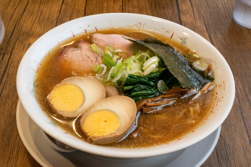 (限定) 中華そば (記念ステッカー付き) + 煮卵 [2025/10/12] ¥1200+¥100 2025/10/12、5周年記念限定メニュー 公式Xより