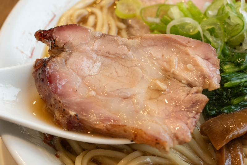 中華そばふるいちだった頃の『中華そば』あります。 動物たっぷりに魚介たっぷり チャーシューは香り豚の肩ロース 吊るし焼、煮豚、低温調理 リニューアル前のふるいち時代の中華そばを再現した限定メニュー。 やや濁りのある醤油スープは熱々。 鶏・豚などの動物系に、煮干し・節系などの和風魚介と野菜を合わせている。 ダシ感がたっぷりでスープに厚みがあり、食べ進むとダシの濃厚感が増してくる。 味付けはまろやかな醤油で、濃すぎることはない。 以前と同じだと、麺量は200g、切り刃18番。 切刃18番の中太縮れ麺は、春よ恋などの国産小麦100% 適度な硬さの茹で加減で、表面がツルツルで、モチモチの食感で、麺そのものが美味しい。 スープに負けない存在感がある。 (自家製麺) チャーシューは、香り豚の肩ロースの、吊るし焼、煮豚、低温調理の3種。 吊るし焼は、甘味のある味付けに、吊し焼きの香ばしさで美味しい。 煮豚は、脂の甘みと肉の旨味がある。 低温調理は、しっとりと柔らかく美味しい。 煮卵は半分にカットしてあり、黄身は固茹でで、白身は表面に近い部分が濃いめに色づいている。半熟味玉とは異なる懐かしい味わい。 メンマはコリコリとした食感で風味が良い。 その他の具は、ほうれん草、ナルト、海苔 薬味は長ネギの小口切り。 記念ステッカー付き。 ダシの旨味がたっぷりの濃厚で深い一杯! |