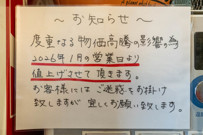 中華ソバ 1000 [2019/9/10] [2021/1/22] [2021/7/2] [2021/9/11] [2022/1/6] [2022/8/28] [2024/1/9] [2026/1/7]、特製中華ソバ 1300