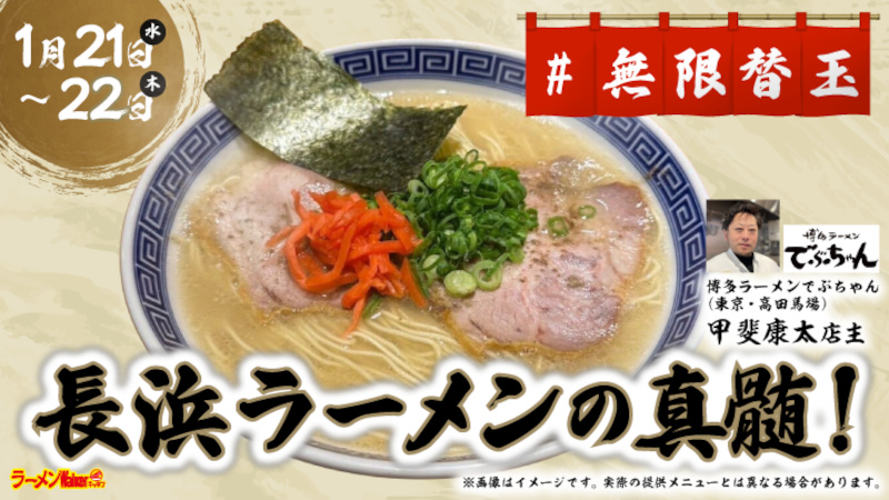 「博多ラーメン でぶちゃん」甲斐康太店主。 豚骨の本場・九州出身で、究極の旨味や発酵、濃度を探求し続ける甲斐店主ならではの豚骨ラーメンの新世界。 今回の出店では、福岡博多漁港に面する長浜で生まれ屋台文化から発展したとされる「長浜ラーメン」を提供。 甲斐店主「賞味期限1分のキワモノラーメン」。お見逃しなく。 ■長浜ラーメン 【長浜ラーメンとは?】