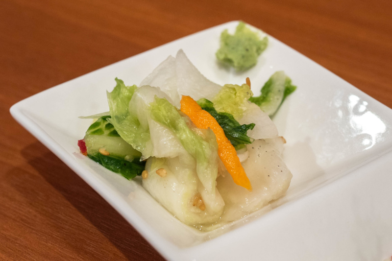 香り豚レアチャーシューと梅酢に漬け込んだ大山鶏のしっとりチャーシューを1枚ずつ。 薬味(みょうが・大葉・三つ葉・白髪ねぎ)を乗せてご提供します。 ※出汁氷を使用しているのでスープは薄まることなく最後まで冷たく召し上がれます。 〆茶漬けセットがおすすめです。 〆茶漬けセット 300円 (ごはん・日替わりお漬け物・五色あられ・海苔・山葵) 麺量は 150g / 200g からお選びください |