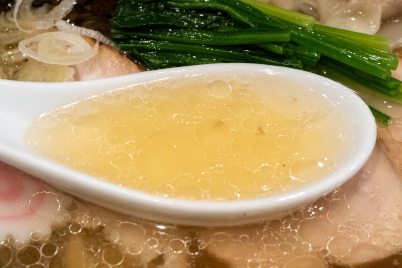島根県産の高級魚ノドグロ煮干しと北海道産真昆布・浅蜊で出汁をとった春にぴったりな淡麗スープです