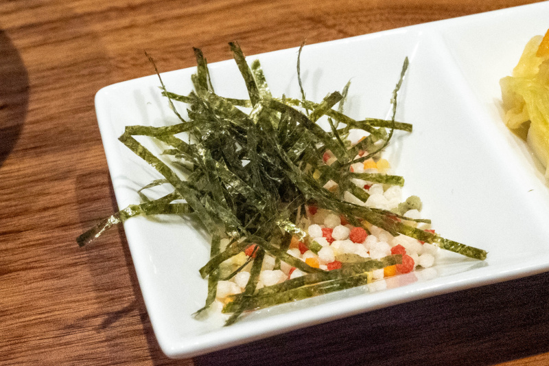 1日10食限定 1300円 『鈴ノ木専用粉』と『春よ恋全粒粉』をブレンドした平打ち麺を冷水でしめ、伊吹いりこ、鰺煮干し、うるめ、北海道産真昆布でとった冷たい煮干しスープを合わせた、暑い日に食べたい清涼感たっぷりの冷やしラーメンです 今年はローストビーフと薬味(みょうが・大葉・三つ葉・白髪ねぎ)を乗せてご提供します ※出汁氷を使用しているのでスープは薄まることなく最後まで冷たく召し上がれます 〆茶漬けセットがおすすめです。 麺量は150g、200gからお選びください ・肉増し 【内容】 ローストビーフ増量 500円 ・〆茶漬けセット 300円 【内容】 ごはん・日替わりお漬物・五色あられ・海苔・山葵 |