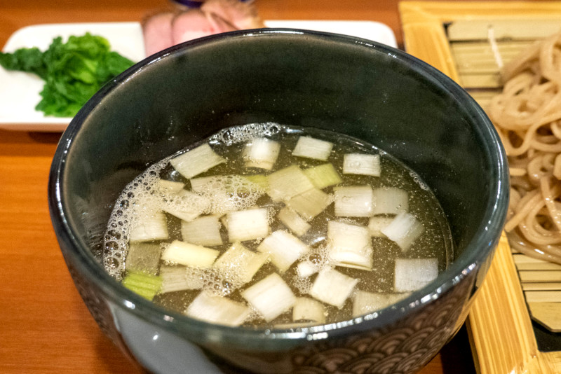 麺をつけ汁に漬けて |