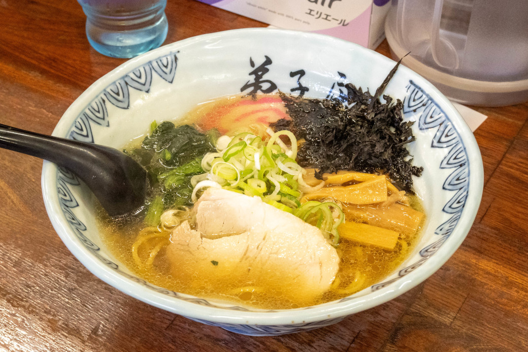 魚介しぼり醤油 [2023/10/8] 1000、魚介しぼり醤油チャーシュー 1200 弟子屈醤油 980、弟子屈醤油チャーシュー 1180 弟子屈味噌・辛味噌 1000(大辛 +50円)、焼肉味噌・焼肉辛味噌 1200 和だし醤油 [2025/9/24] 980 貝だし塩 [2025/9/24] 980 白湯塩 1000 レッドドラゴン 1100 大盛り +150円 バラビッグチャーシュー 1枚 200 肩ロースチャーシュー 2枚 200 味付け玉子・メンマ・ねぎ・磯海苔 150、コーンバター 180 行者にんにく餃子 5個 350・10個 600 大北海道手づくり餃子 3個 500 弟子屈 味噌ザンギ 1個 250・3個 700 チャーマヨのり巻き 350、山わさび巻き 350、ミニ豚丼 580 ライス 180・小ライス 120 サッポロクラシック生+行者にんにく餃子 5個 980 生ビール サッポロクラシック生 700、サッポロラガー 中瓶 800 サッポロプレミアム アルコールフリー 480 ペプシコーラ・オレンジジュース 350