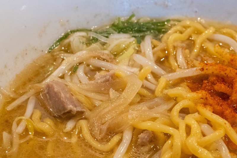 伝統の味を引き継ぎつつ、自らの味を追求 名店「すみれ」出身の店主が腕を振るう行列店。丁寧に取る清湯スープはコクと繊細さを併せ持つまろやかな仕上げで、コシの強い熟成麺、絶妙な火加減で炒めたモヤシなど、その全てが調和した一杯は、金賞にふさわしい完成度。1日20杯限定の「中華そば 醤油」¥1100も見逃せない。 みそら~めん ¥1100 味噌の力強さはありながら、ずっと飲み続けたくなるまろやかでキレのあるスープ。焦がさずに、それでいてしっかり香ばしく炒めたモヤシなど、細部にも技術が光る。 森住製麺の特注縮れ麺は、4~5日間熟成させることで、よりプリッとした食感を引き出している。 チャーシューは、ブランド豚「ルスツ羊蹄ぶた」の肩ロース。柔らかな肉質で、旨味・甘味も濃い。 店主は 穴澤岳美氏。音楽活動をしていた20代中頃に一念発起。幼い頃から食べていた「すみれ」の門をたたいた。13年腕を磨いて2016年に独立した。 麺:中太/角/縮れ 森住製麺 150g スープ タレ:味噌 仕上油:なし 種類:豚骨・魚介(煮干など) [2024/9/25] みそら~めん 1000 [2024/9/25]、みそチャーシュー 1450 中華そば しょうゆ 1000、中華そば しょうゆチャーシュー 1450 しょうゆら~めん 1000、しょうゆチャーシュー 1450 しおゆら~めん 1000、しおチャーシュー 1450 大盛 +150 道産軟白ねぎ(別盛) 150、高知産黄金しょうが(おろし) 150、穂先メンマ 250、 チャーシュー 3枚(道産ブランド豚) 450 小ライス 100 / ライス 150 / 大ライス 200 瓶ビール 黒ラベル 550 倉島ミネラルサイダー・黒ウーロン茶 250、オレンジジュース 200 |