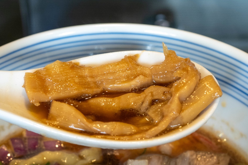 炎のスープは、天然羅臼(昆布)や伊吹いりこなどベースの構成は鴨福と同じ部分もありますが、