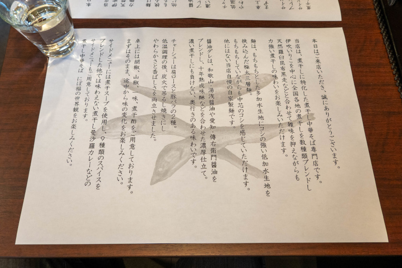 [2026/4/20] (オープン初日は、濃厚醤油・塩、煮干しマサラカレーのみ) ※ 特製は +400 (チャーシュー各1枚増、ウズラ味玉3個・海老ワンタン2個追加) 濃厚醤油 1000 特製 [2026/4/20] 濃厚塩 1000 中華そば 醤油 1000 中華そば 塩 1000 担々麺 1100 和え玉 300 ウズラ増し 3個 150、チャーシュー増し 400 煮干し蔓沙羅(マサラ)カレー 1000・ハーフ 500 チャーシュー丼 400 ライス 200 紙エプロン 50 |