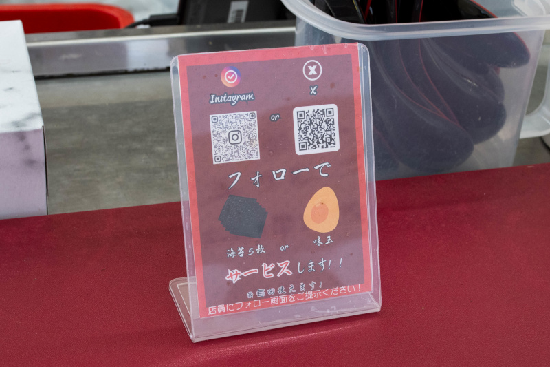 のり・味玉・粉海苔・マー油・辛い奴 100、キムチ 150、ほうれん草・キャベツ・九条ネギ・チーズ 200、チャーシュー 300 ライス(食べ放題) 100 チャマヨドン・ネギシオドン・アブラノドン・キムラクン 250 おつまみ キャベチャー 250 ビール 600、ハイボール 550 ラムネ 200  |