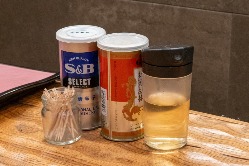 卓上の一味唐辛子で味変 |