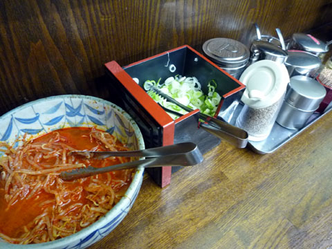 ネギ・モヤシナムル・白ゴマ・胡椒など |