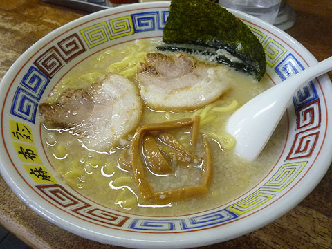 チャーシューは脂身がかなり多かった。メンマはコリコリとしている。 |